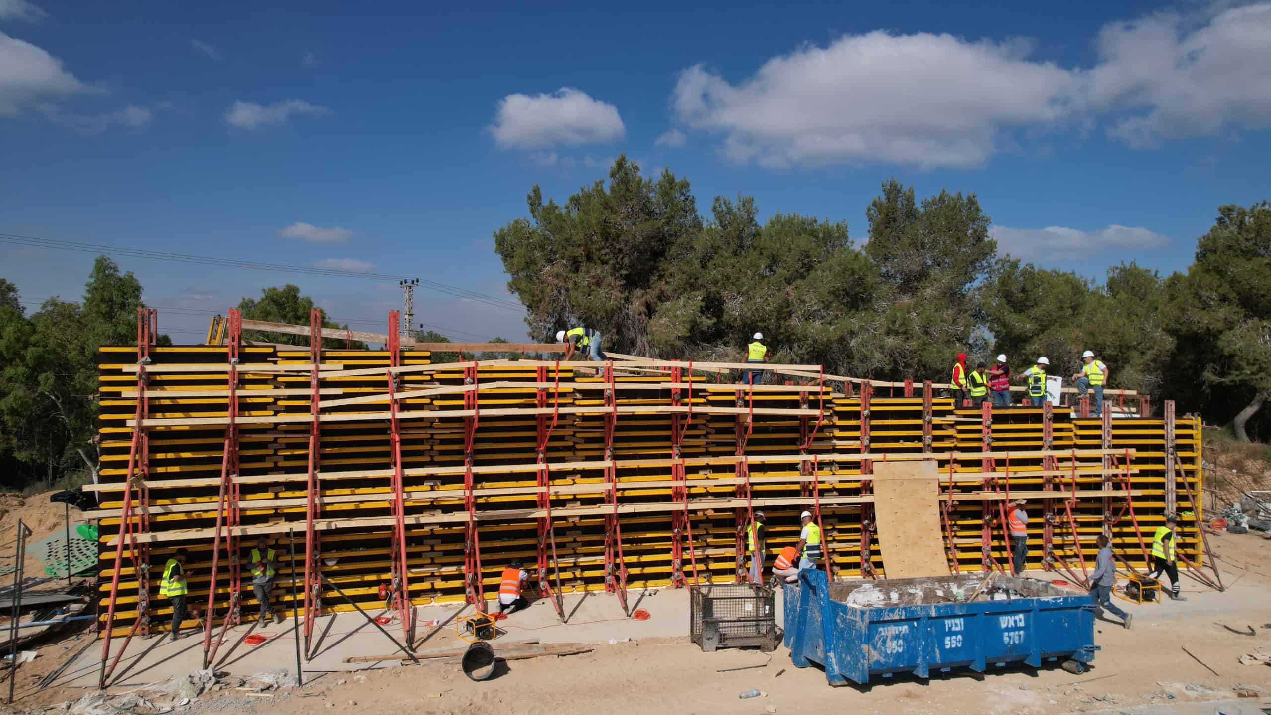 יציקת הקיר האדריכלי באתר ההנצחה שברשות קק”ל ביער גברעם – לזכרם של 68 חללי מבצע צוק איתן.